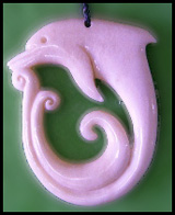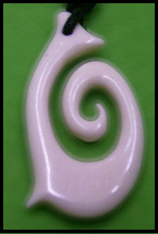 | This carving are made of different materials such as bull horn, mother of pearl and red shell usign hei-matau,koru, mania designs |